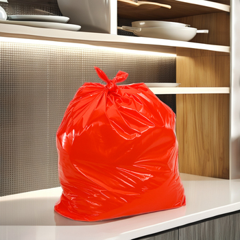 Venta al por mayor personalizado grande rojo reciclable respetuoso con el medio ambiente 15 Mic, 32-45 bolsas de galón de trabajo pesado industria plástico bolsa de basura rollos
